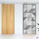 Autocolante decorativo impresso em alta resolução, podem ser aplicados na porta no interior ou exteriores e são projectados para durar mais de 5 anos,  o resultado final é preciso e limpo, sem dobras com a visibilidade final de uma peça única, com acabamento película translúcida a mate, o qual protege contra riscos, sujidade, manchas e de fácil limpeza.